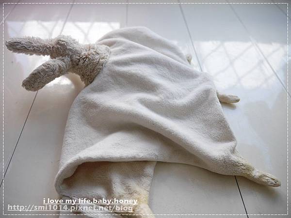 沒錯,他就這樣一直咬、一直吸安撫巾的四角.....哈哈哈 安撫巾四個角落都是他的口水味、又髒、又硬,怎麼洗也不會乾淨.....