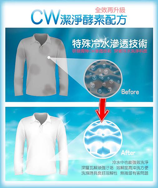 ✿潔淨:CW全效能潔淨酵素,升級雙重去汙效果 對付頑抗汙垢 輕鬆打擊