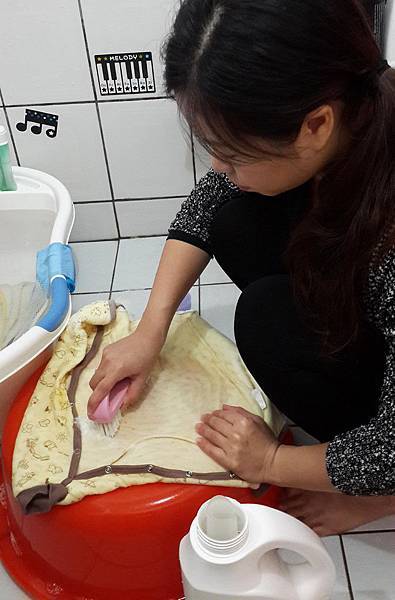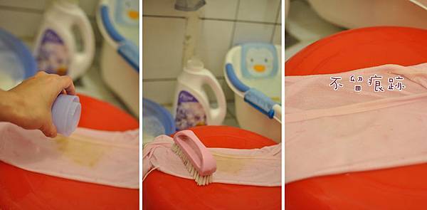 滲透進去紗布衣。一樣三步驟 1.倒入清潔劑 2.刷洗 3.沖洗,完全不留痕跡!!!!