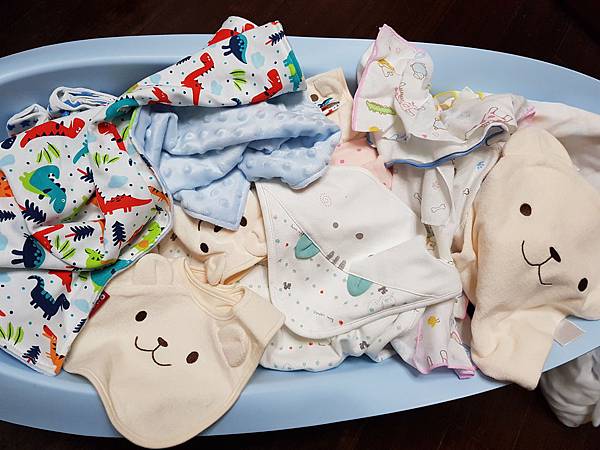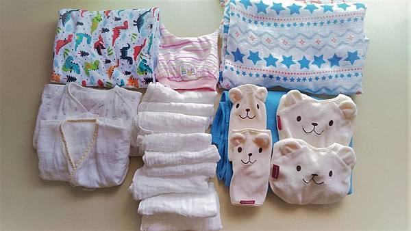 因為我們的洗衣機沒有專門給柔軟精的洗衣槽,因此要等到最後一到程序時再人工加入><洗完後經過陽台,吹來的風都是香的!!!!!!!!!!摺好的寶寶衣服~好療癒阿