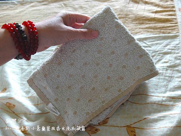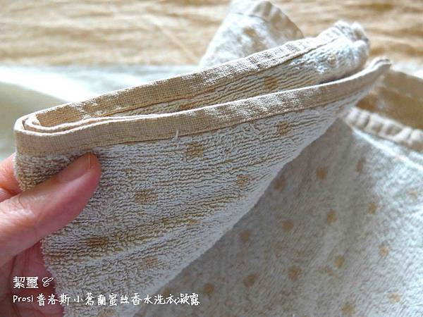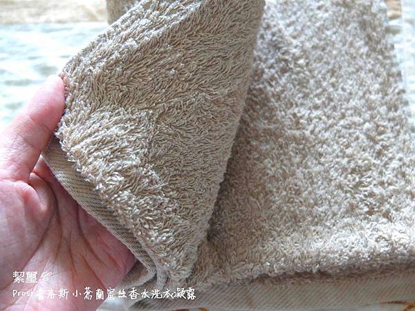 這是使用 Prosi 洗衣精洗的毛巾,他增加 20% 雙效柔纖因子,細膩調和親膚柔軟配方,深入各式纖物纖維理順紋理,除了衣物能蓬鬆柔軟
