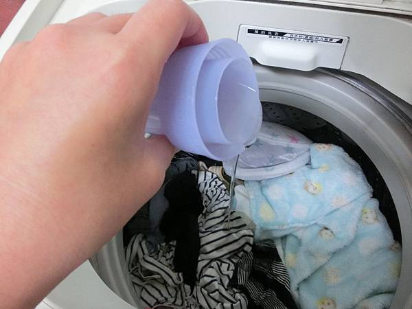 蜜拉大約使用1.5瓶蓋,因為我們家洗衣機算大而且是高水位,所以大家要依照自己家的洗衣機大小和水位評估用量的多寡~