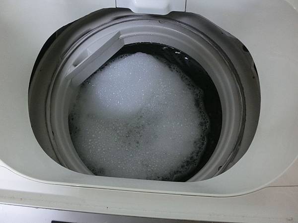 洗衣的流程跑過一次就可以囉~倒完之後就會出現濃密的泡泡~這時候就把洗衣機電源關閉,靜置4~6小時,先關閉洗衣機,等待時間到