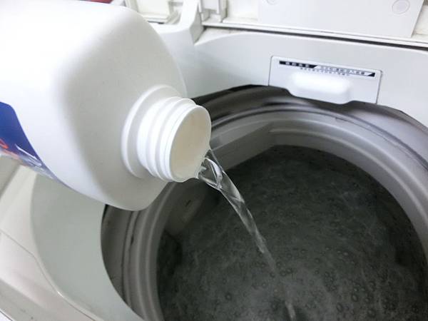 先將洗衣機放水到滿水位,然後再把整瓶600ml的除菌劑全部倒進去,接著關閉電源靜置約4~6小時,時間到了之後就開啟洗衣機用正常